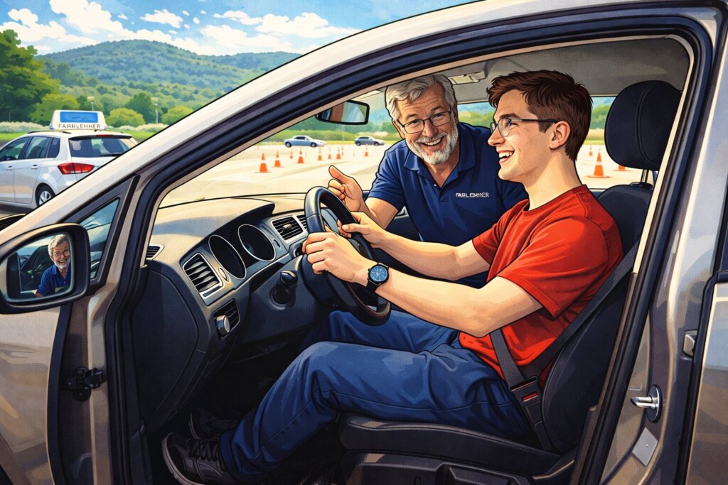Mit einem Fahrlehrer auf dem Beifahrersitz kannst DU Auto fahren.